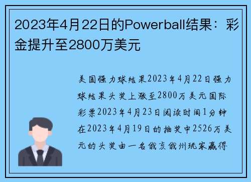 2023年4月22日强力球结果:头奖上涨至2800万美元